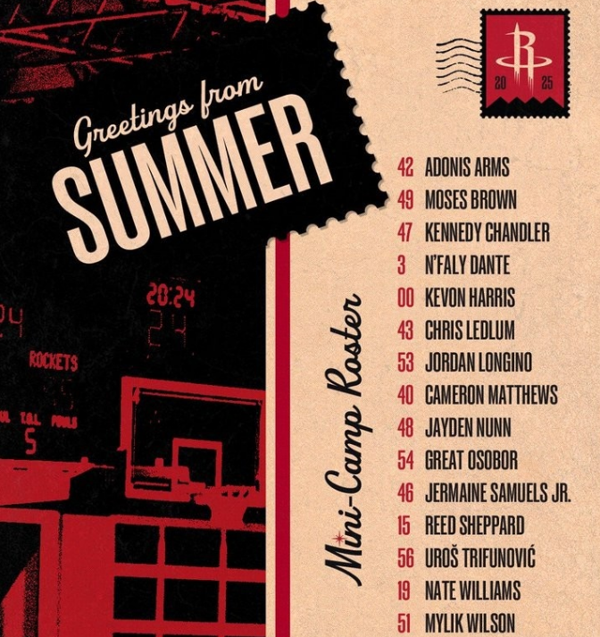北京时间7月8日,火箭官宣今夏参加NBA夏季联赛的15人大名单,由去年的探花秀谢泼德领衔,还有前广东男篮水货外援阿姆斯在列,有望在7月18日对阵开拓者的杨瀚森,弥补他们在CBA赛场无缘交锋的遗憾。
