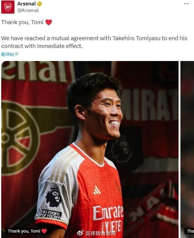 (目前已经官宣了,里面还有其他消息,所以还是说了吧)BBC记者SM消息,阿森纳已和富安健洋达成解约协议,这名后卫即将自由转会离队。